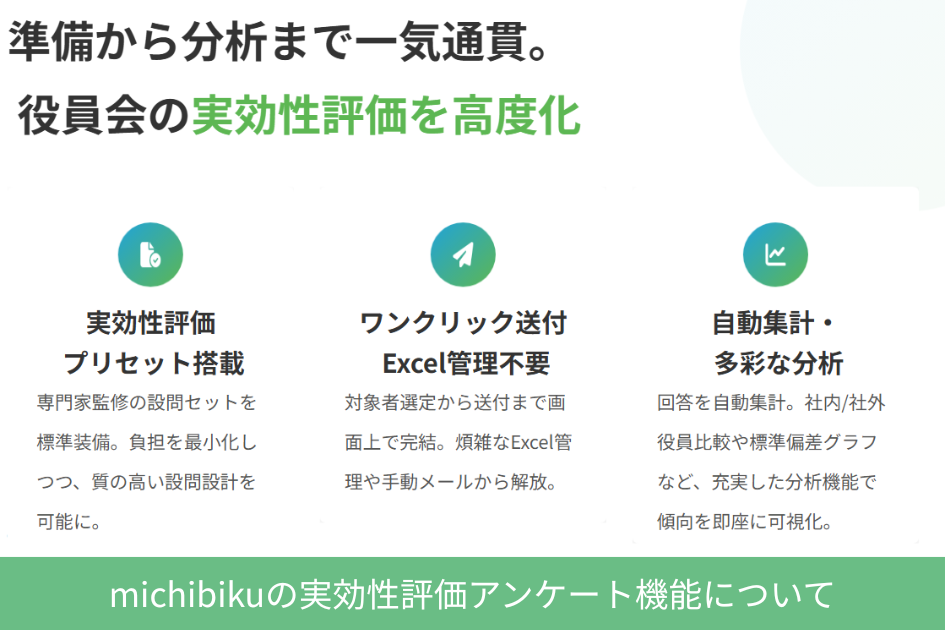 あとは録音データをもとに会議分析ができ、実際の会議運営をPDCAサイクルに乗せて改善していけることが決め手です。他社と比較した際も、実効性評価ができる仕組みと、実際の事務局作業の運用面、この両面で一番使い勝手が良さそうなのがmichibikuだと感じました。